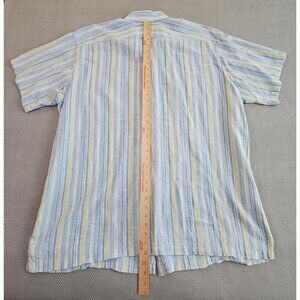 Effortlessly combine comfort and style with the Nyne New You New Energy Shirt, designed with the Big & Tall in mind. This men's 1X top features a breathable blend of cotton and linen, ideal for any season. Its classic blue and yellow striped pattern and button-down collar lend a timeless appeal, perfect for various occasions from casual outings to workwear.