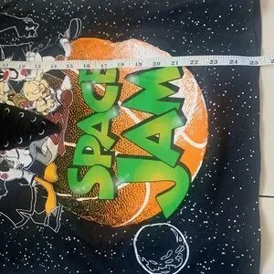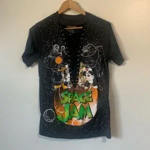 Vintage Space Jam T Shirt Womens Medium Looney Tunes Black Laced Short Sleeve