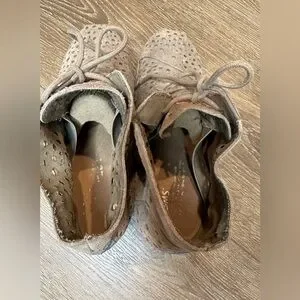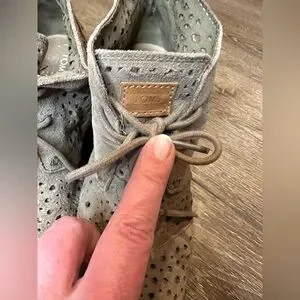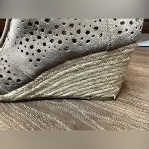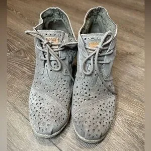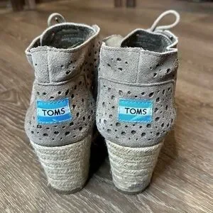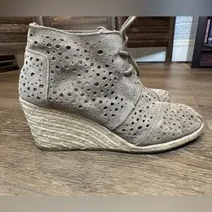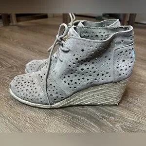 TOMS Laser cut Suede Wedge Booties • Espadrille