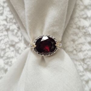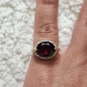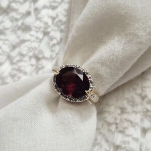 Vintage 10k Yellow Gold Garnet & Diamond Ring