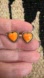 For your consideration are these spiny oyster Southwestern stud earrings that features a vibrant, pumpkin orange spiny oyster shell, hand-cut into a heart shape. The shell is set in a sterling silver bezel with a twisted rope design, a common detail in Native American and Southwestern jewelry. The earrings are closed back and are marked with "925," indicating they are made of sterling silver. The design is a classic example of Southwestern craftsmanship, often associated with Navajo or other Native American artists.