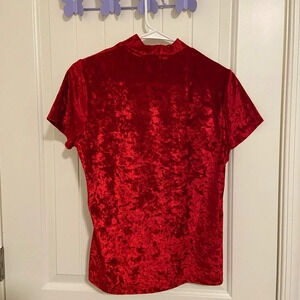 Women’s top. Top is red in color with high neck cut & made of crushed velvet material. Size medium. Smoke free home!