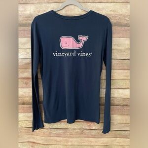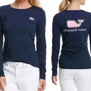 Vineyard Vines Women’s Blue Long Sleeve Cotton T-Shirt Pink Whale Size: Small