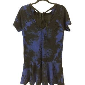 Wonderland By Orange Short Sleeve Tie Back Distressed Mini Dress Women's Small