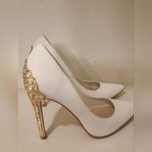 Shoe Dazzle White Heels with Gold Accents