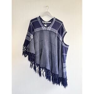 Dress Barn Poncho Scarf Wrap Blue Grey Plaid-One Size Fits Most