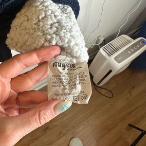 Soft and warm navy blue fleece huggie hoodie with a front pocket. Perfect for a cozy evening! One size fits most.