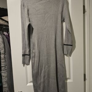 Stylish DKNY gray sweater dress black button accents and logo details. Perfect for layering. new no tag