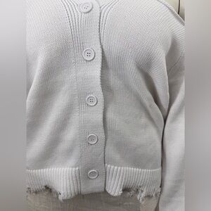 525 America Off-the-Shoulder White Frayed Hem Sweater XS & L NWT