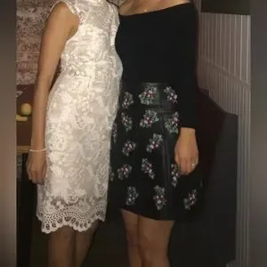 Club Monaco Size 2 Black Leather Mini A Line with Embroidered Flowers