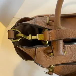 Caramel colored Gold Tone Hardware Snap closure at top handle drop 7.25” Shoulder strap drop 22” adjustable