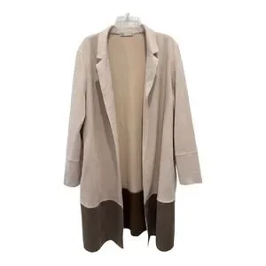 Zara Duster Coat Womens XL Faux Suede Longline Open Beige Brown Colorblock Soft