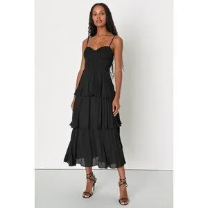 Lulus Cascading Crush Black Tiered Bustier Midi Dress - Size XXL