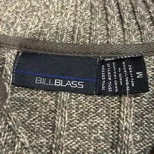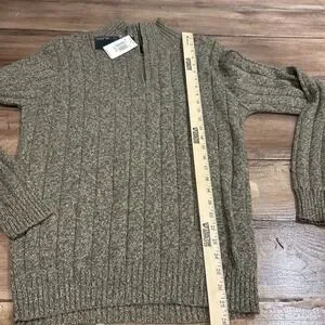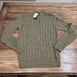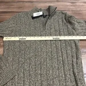 Bill Blass Ribbed Knit 1/4 Zip Green Beige Size M Men's Sweater