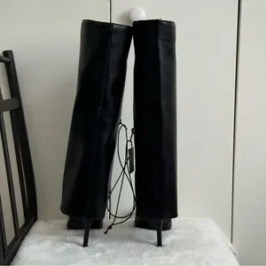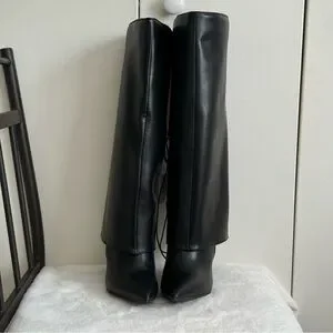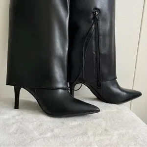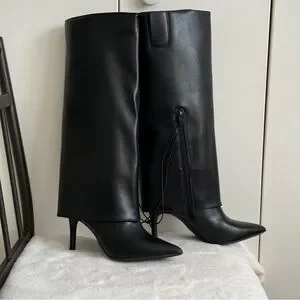 Elegant black leather boots with pointed toe. Stylish and versatile for any occasion.