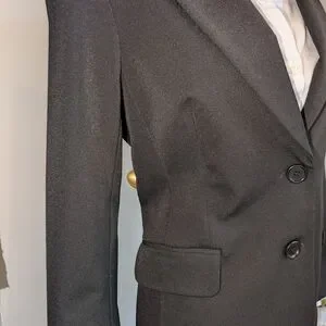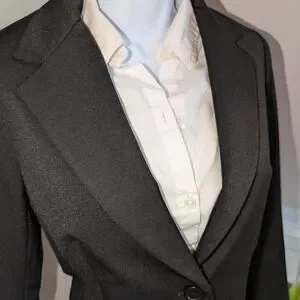 Sleek and sophisticated black suit jacket. Ideal for office or evening wear.