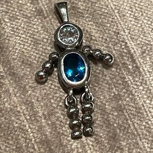 Vintage Birthstone Moving Boy Charm Bracelet Necklace Pendant Blue 925