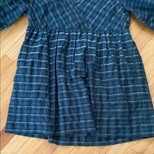 Stylish plaid dress with long sleeves. Features a mix of green and blue tones.