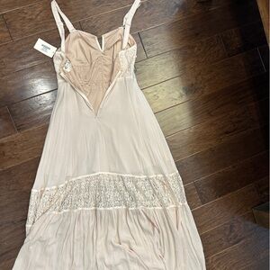Elegant Joyfolie Rinnah dress in shell. Size M Features lace detailing and side slit. Perfect for special occasions. Removable straps