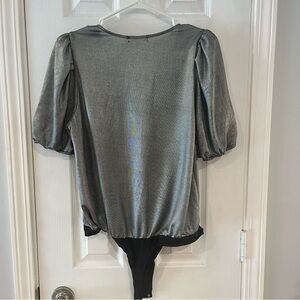 Pleione Metallic Silver 3/4 Sleeve Wrap Bodysuit Size XL NWOT.