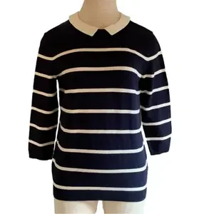 Talbots sz Mp navy blue and white striped sweater with removable collar