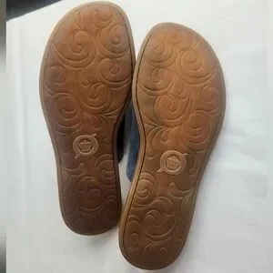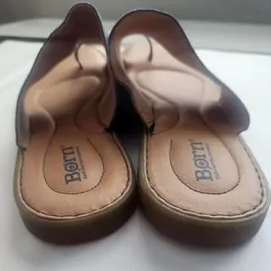 Born Sandals Size 10 Blue Suede Leather Toe Flat Slip On Comfortable Walking