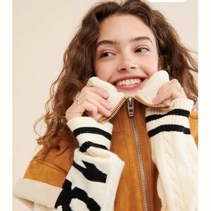 Anthropologie Blank NYC Faux Suede Tan and Cream Sherpa Lined Vest Sz L