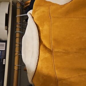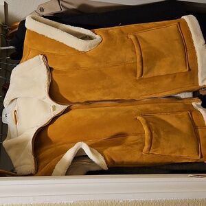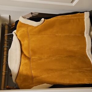 Stylish tan and cream sherpa lined vest. Perfect for a casual look. EUC...note vest fits more like a size xl.