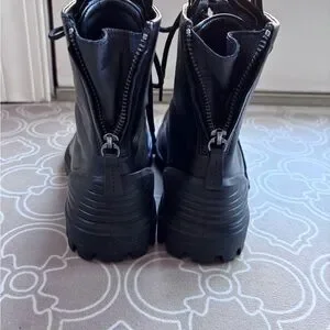 Stylish black leather combat boots with lace-up front. Perfect for versatile wear.