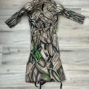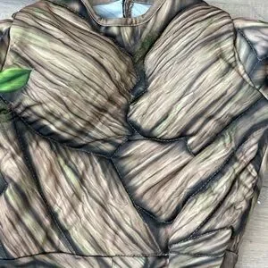 Marvel superhero costume for kids. Features a brown wood-like pattern with green vine accents. Perfect for imaginative play.