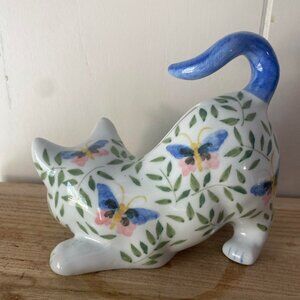 Add a sweet, decorative accent to your home with this lovely blue and white cat figurine! In excellent condition, this piece is perfect for any shelf, desk, or mantel. It's a must-have for every #catlover and is already popular—with one person having it in their bag!