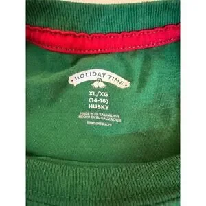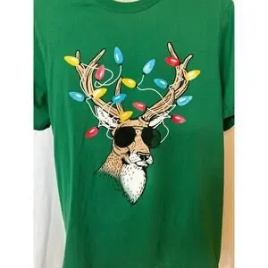 Holiday Time Green Reindeer Lights Tee Youth XL Fun Festive Christmas Top