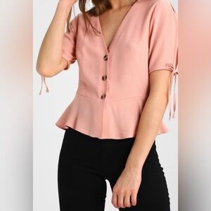 Topshop Pink Buttoned Peplum Viscose V-neck coquette feminine Blouse size Small