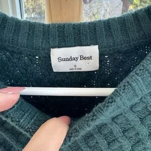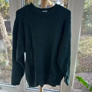 Aritzia Peggy Sweater Dark Green Cable Knit Chunky Pullover Size Small