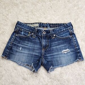 AG Adriano Goldschmied The Frayed Cut Off Distressed Denim Jean Shorts
