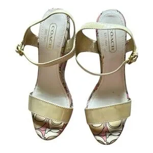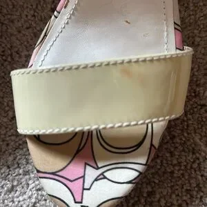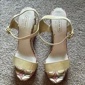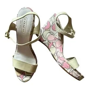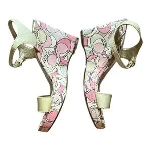 Stylish Coach wedges with a vibrant pink and yellow pattern. Perfect for adding flair to any outfit. Not in perfect condition. Some spots noted in photos. Size:8