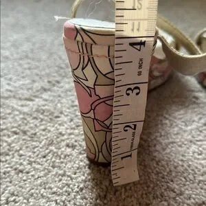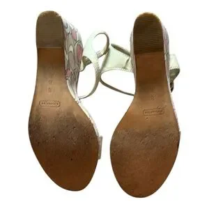Coach Women's Pink and Yellow Patterned Wedge Sandals Size:8