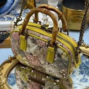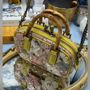 🆕 KURT GEIGER LONDON 🧿 NWOT XS Kensington Duffle, Yellow Floral Sequins
