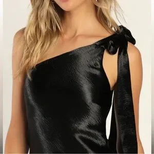 Lulus black satin one shoulder formal maxi dress XS