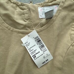 Adorable tan dress with bow detail. Perfect for casual outings. Comfortable and stylish.
