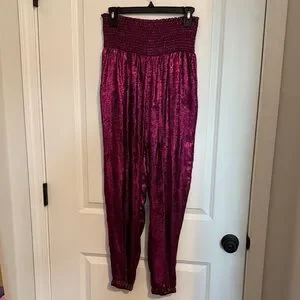 Elegant Deep Purple Fuchsia Pink Metallic Women's Jogger Pants