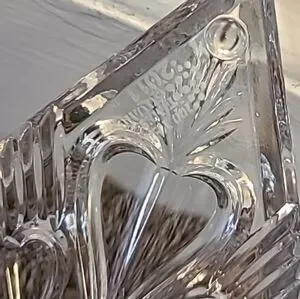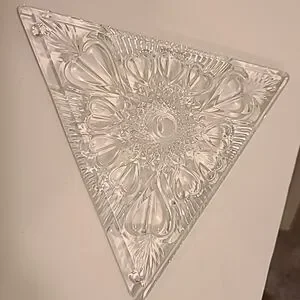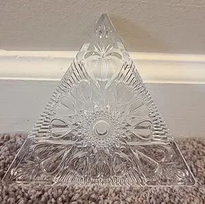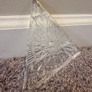 Stunning crystal triangle with intricate patterns. Perfect for adding elegance to any space.