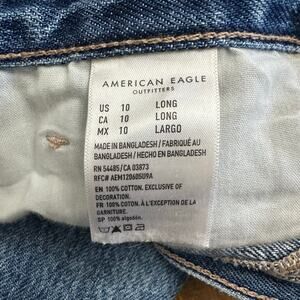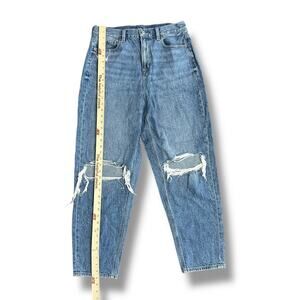 American Eagle Mom Jeans Women’s 10 Long Blue High Rise Distressed Ripped Knees