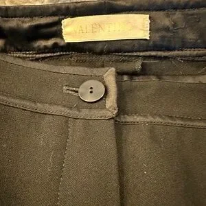 AS PICTURED THESE TROUSER ARE A MIX OF CREPE AND WOOL TUXEDO ACCENTUATED. VERY SLEEK AND ELEGANT LOOKING, THE ONLY REMAINING TAG IS THE DESIGNER, VALENTINO GREAT FOR THE UPCOMING HOLIDAY BUSINESS AND/OR SOCIAL GET TOGETHERS.THE ASKING PRICE WILL BE PREDICATED ACCORDINGLY DUE TO THE LACK OF SUFFICIENT LABELING.