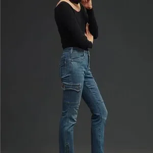 New Anthropologie Pilcro Mid-Rise Slim Straight Cargo Jeans size 29 Tall