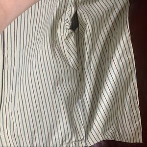 Elegant chocolate leather jacket. Features button closure. Rolled sleeves with striped lining.
