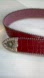 Croc Embossed Genuine Leather Studded Rhinestone Silver and Red Belt