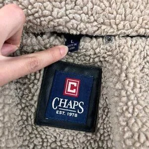Chaps Bomber Aviator Faux LeatherJacket Detachable Curly Shearling Collar Sz L