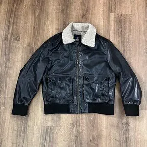 Soar to new heights in fantastic style bomber from Chaps. With the look and feel of a jacket you’ve worn forever, this jacket takes its design cues from aviation gear: l detachable shearling collar, classic patch pockets on its front, and knit cuffs and hem. This is a faux leather jacket but it looks great.