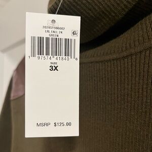 NWT. Size 3X. Khaki green with brown trim.